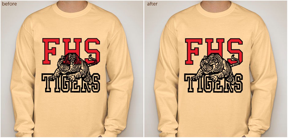 We'll always add a thin transparent outline to your overlapping design elements when appropriate in order to distinguish the layers of your design. If you have several overlapping elements, we'll contact you to confirm exactly how they should be layered.