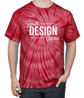 Designs are typically added after the tie dye process, placed where they'll show well against the colorful background.